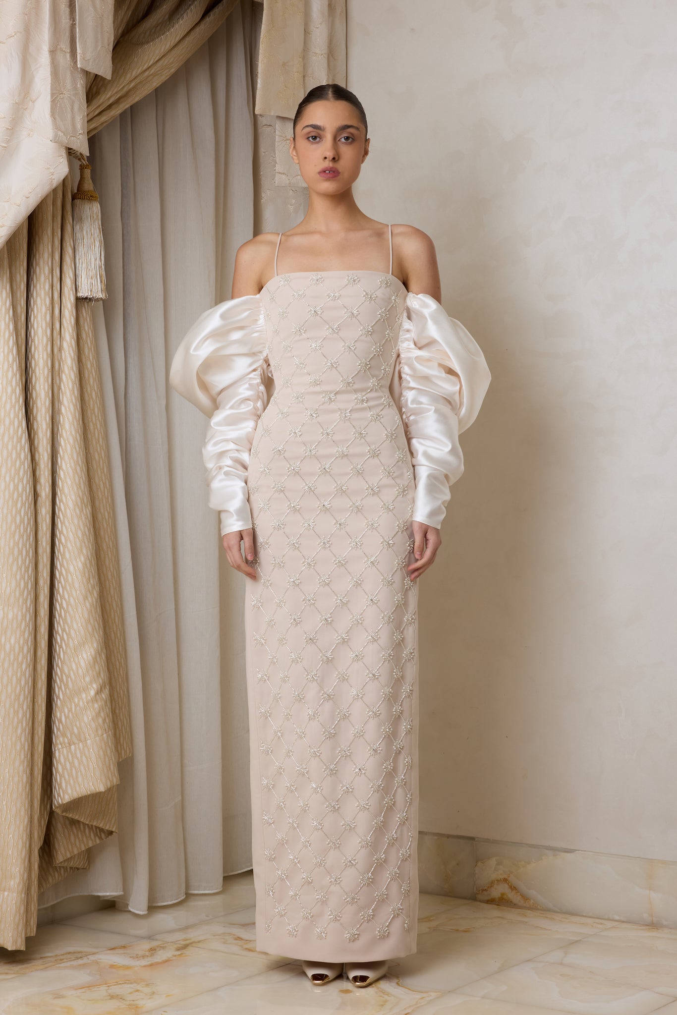 Inspired by the delicate beauty of the Earth Angel rose, each gown in this collection harmoniously blends luxurious duchesse satin with intricate crystal embellishments and enchanting floral appliqués. This is not just a collection; it's a tribute to the timelessness of vintage silhouettes, reimagined for modern brides. With pieces that transition effortlessly from bridal shower to elegant occasion wear, I poured my heart into crafting gowns that embody sophistication and romance.